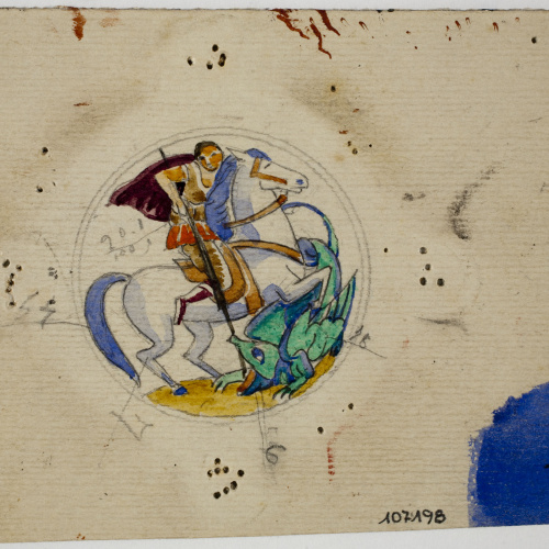 Sant Jordi i el drac. Estudi preparatori per un medalló de vidre esmaltat