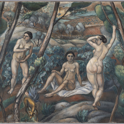 Després d'uns anys a París, on fou influenciat pels postimpressionistes francesos abans d'adoptar un llenguatge pròxim a Cézanne, Sunyer tornà a Catalunya, on es va consagrar com a capdavanter del noucentisme, moviment artístic que propugnava un retorn als models clàssics i mantenia la figuració en oposició als moviments d'avantguarda. "Cala Forn", una de les obres més paradigmàtiques de Sunyer i del noucentisme, va suposar la culminació del seu procés creatiu. Amb una gran força expressiva i sensibilitat, l'artista aconsegueix una perfecta integració de les figures en el paisatge, que no es limiten a reproduir la realitat quotidiana, sinó que es converteixen en símbols de la Catalunya d'aleshores.
