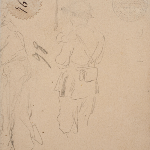 Galeras desde Sta. Lucía (anvers) / Croquis de soldats carlistes (revers)