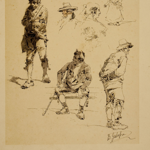 Patge assegut i dos estudis parcials de les cames