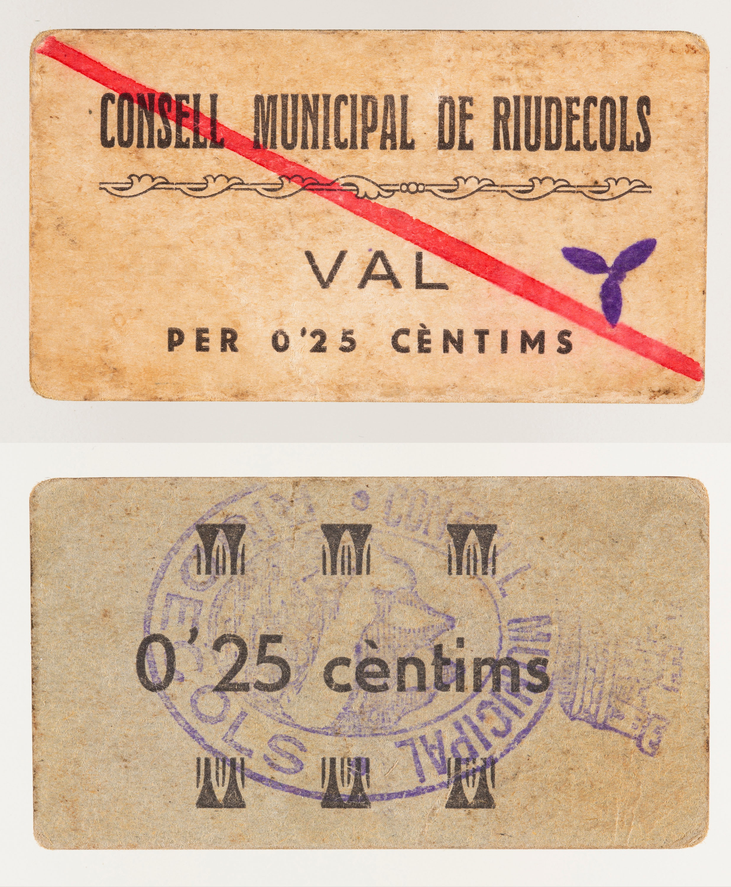 CONSELL MUNICIPAL / DE RIUDECOLS / VAL / PER 25 CENTIMS