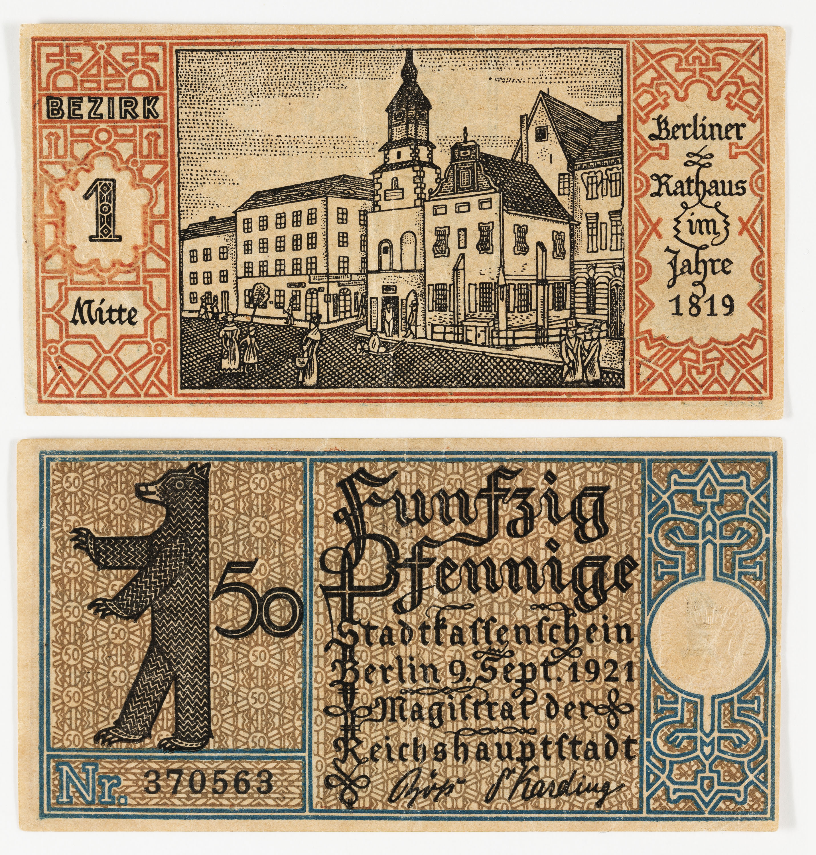Fünfzig / Pfennige / Stadtkassenschein / Berlin 9. Sept. 1921 / Magistrat der / Reichshauptstadt