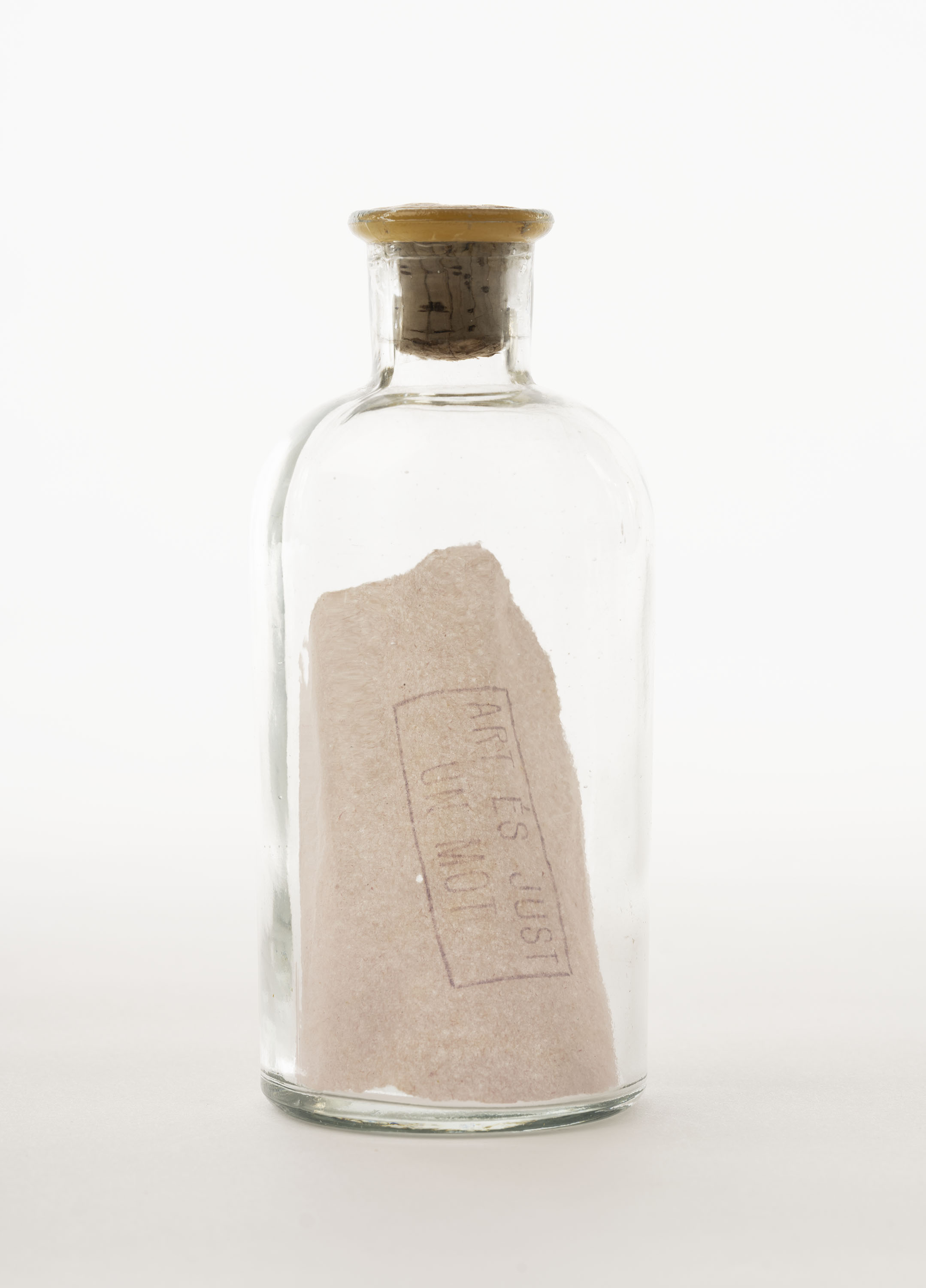 Ampolla de vidre, paper i tap de suro