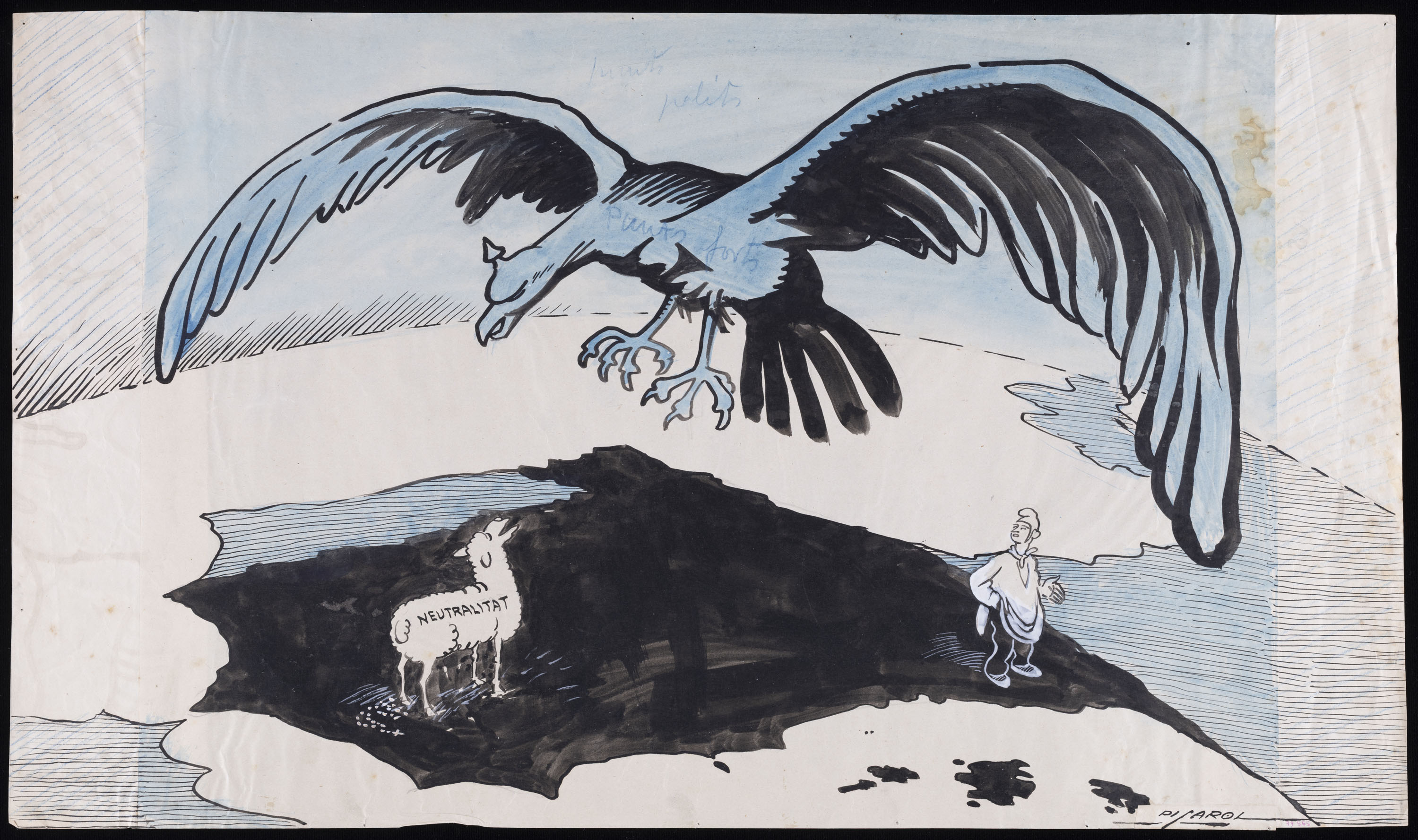 Tinta, aquarel·la i llapis de color sobre paper