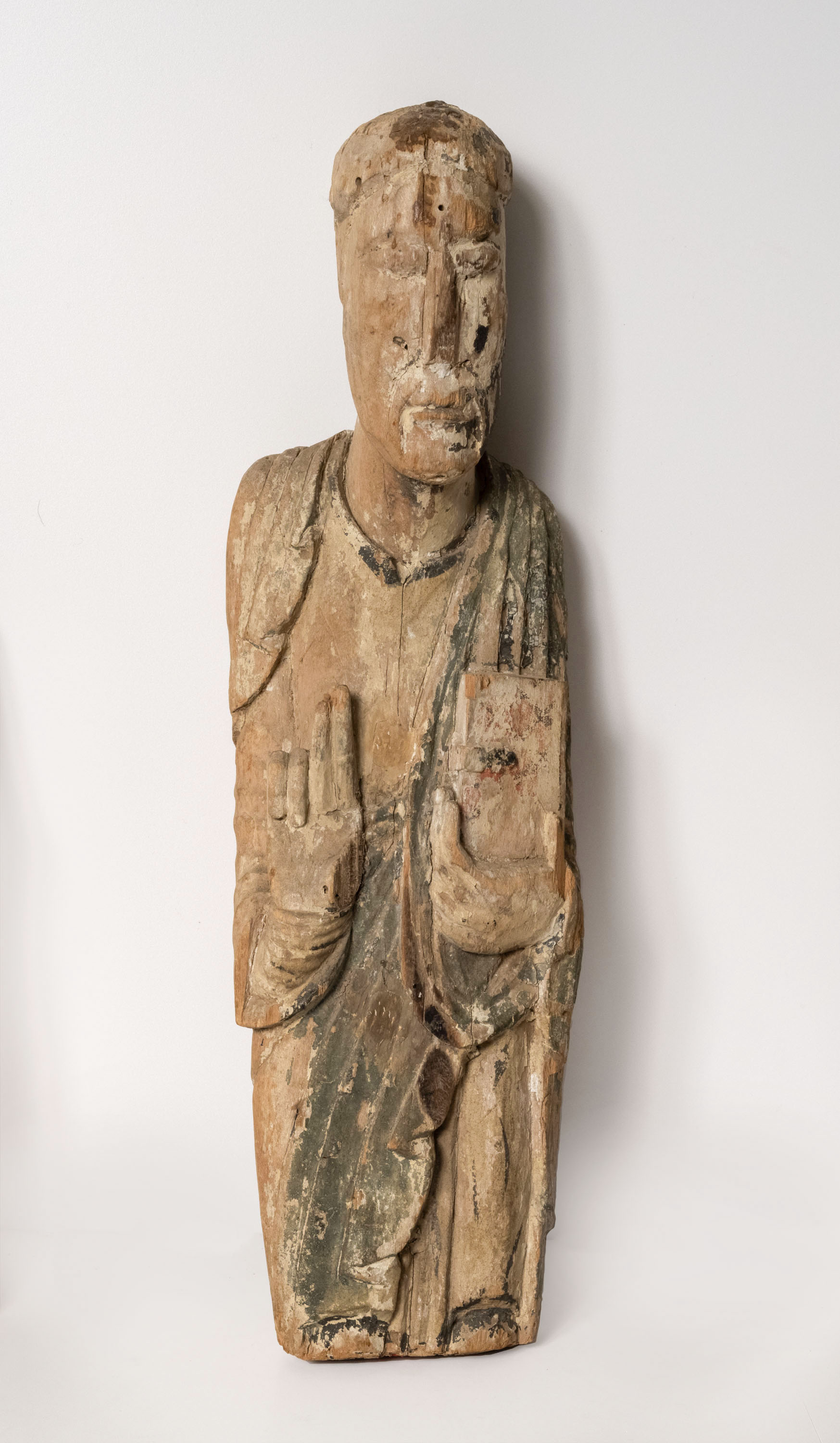 Procedeix de la capella o ermita de Sant Salvador de Bibils (Bonansa, l'Alta Ribagorça, Osca) Forma part del conjunt de vuit imatges d'un frontal d'altar desmantellat i en gran part desaparegut, integrat per la pròpia de la Maiestas Domini i per set d'apòstols. Una novena talla, també d'un apòstol, es coneix a través d'una fotografia