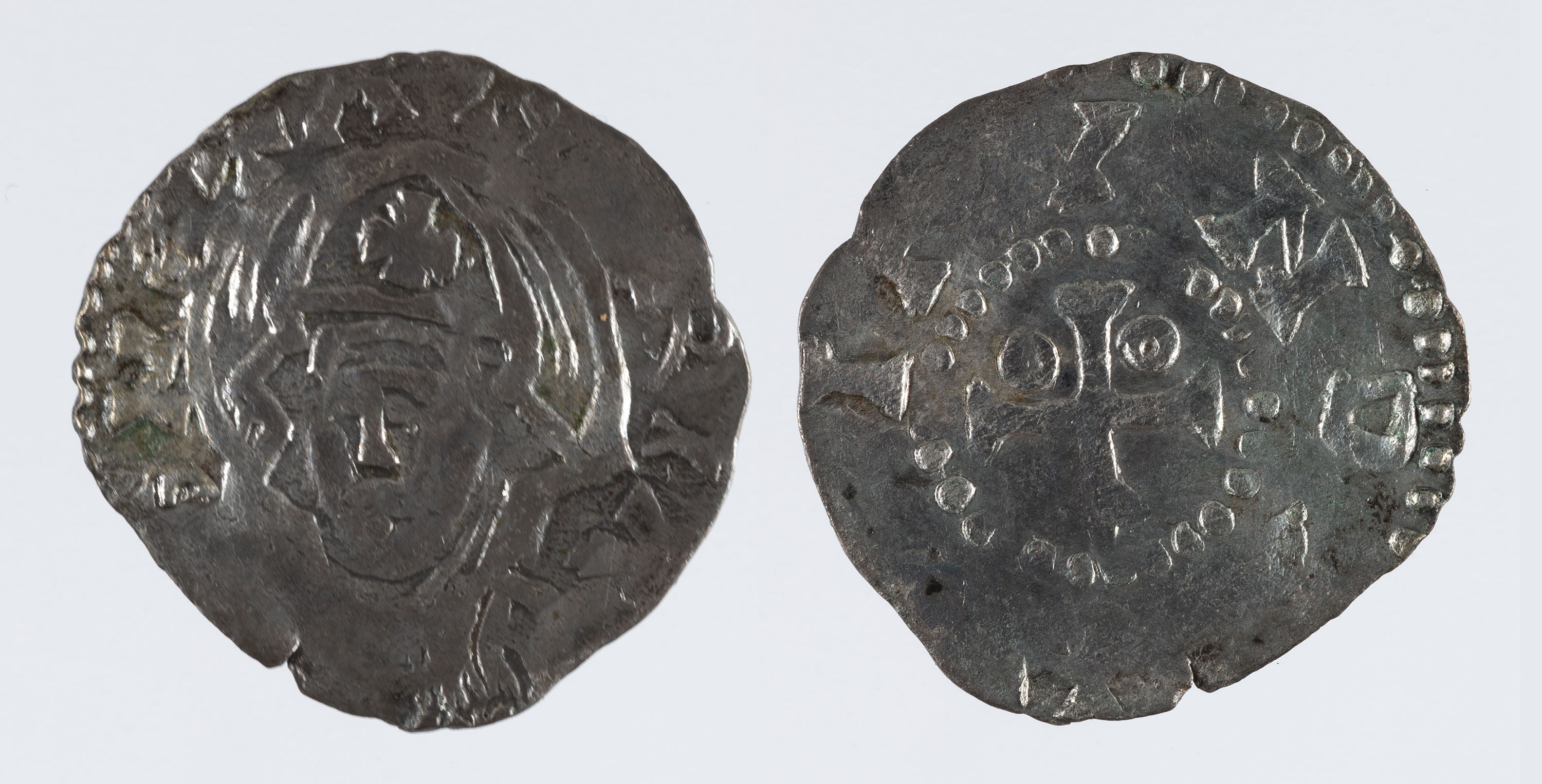 Bust de la Verge de front, cobert amb un vel decorat amb una creueta.