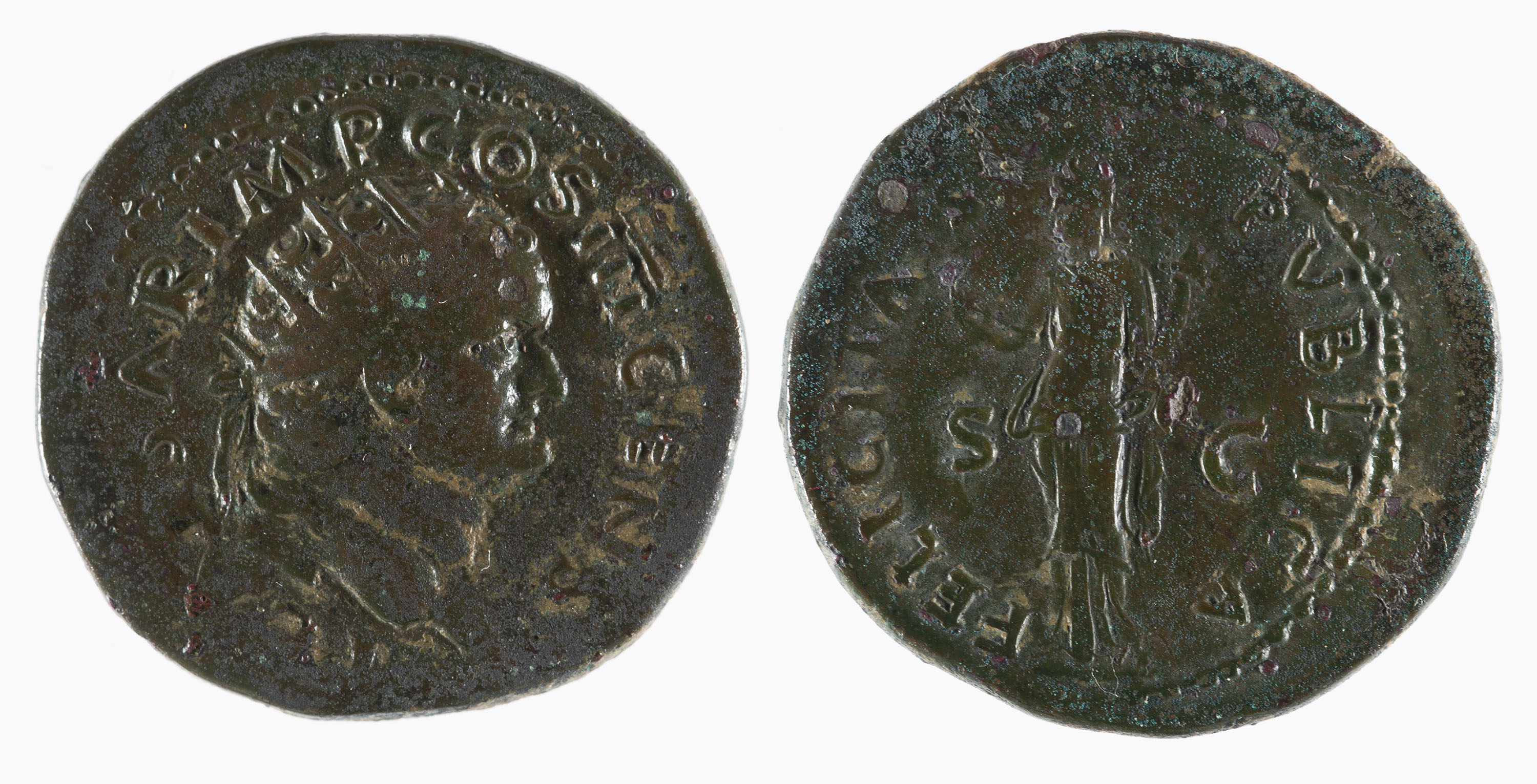 Bust de l'emperador amb corona radiada, a la dreta.