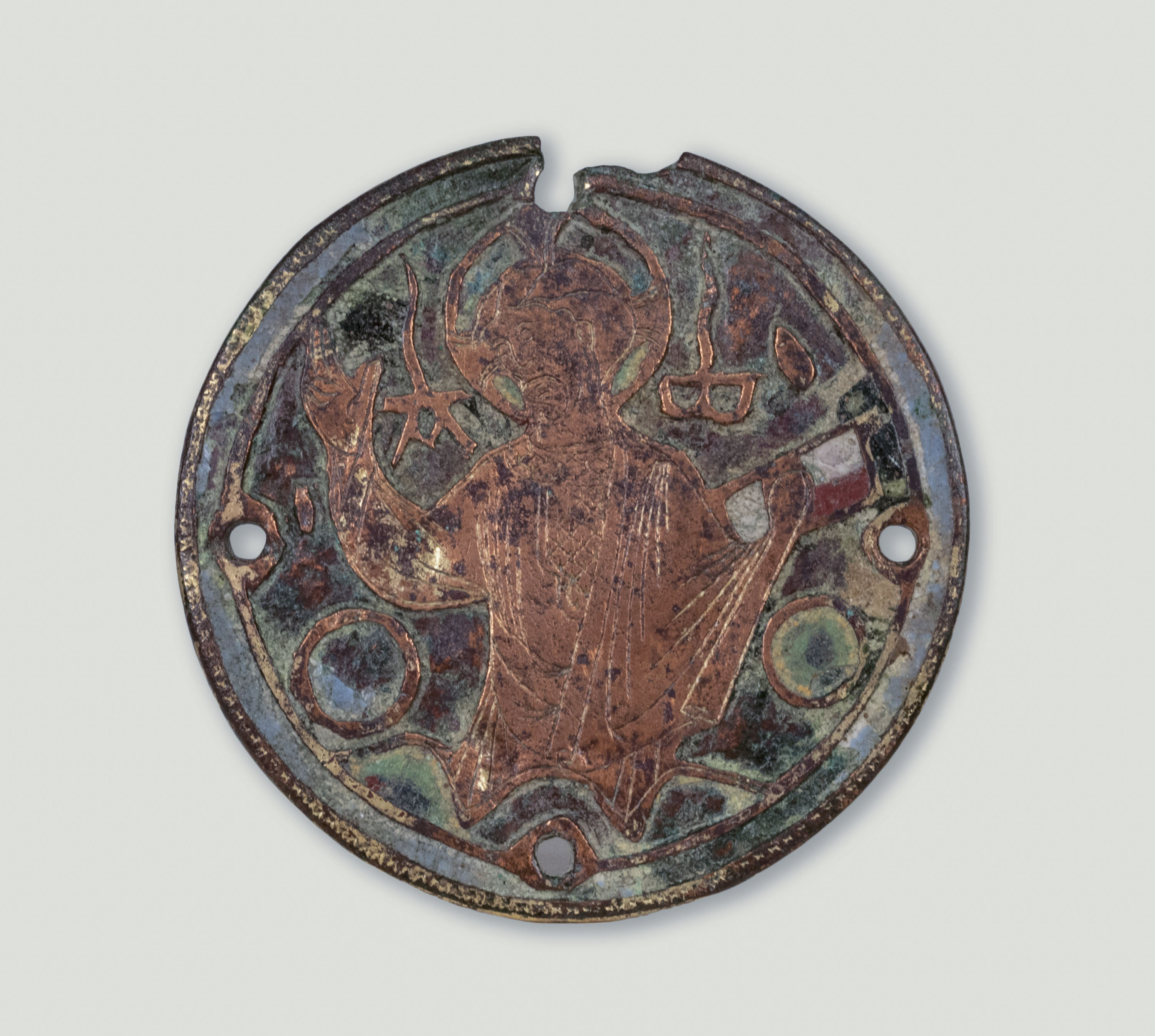 Coure daurat i restes d'esmalt «champlevé»; Esmalt «champlevé»