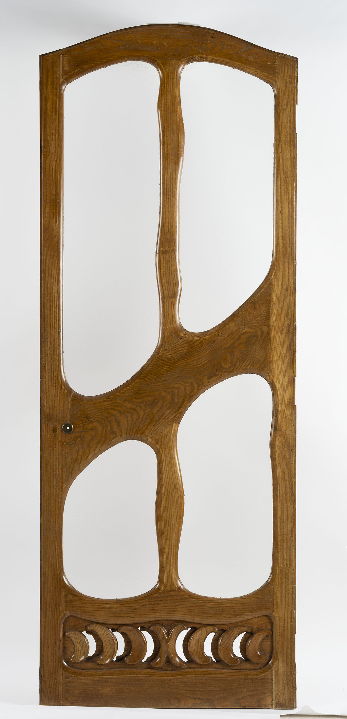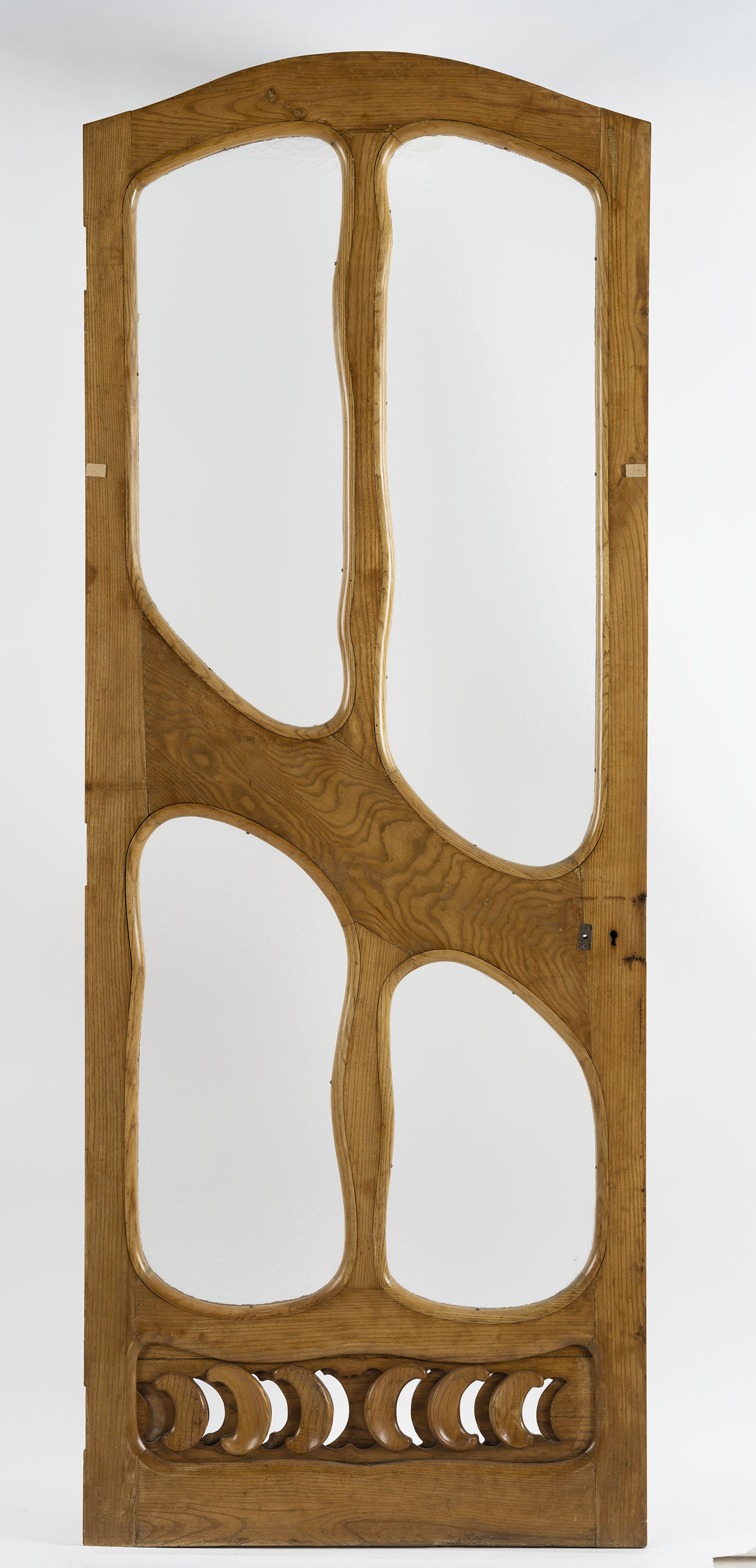 Fusta de freixe tallada, vidre catedral i elements metàl·lics