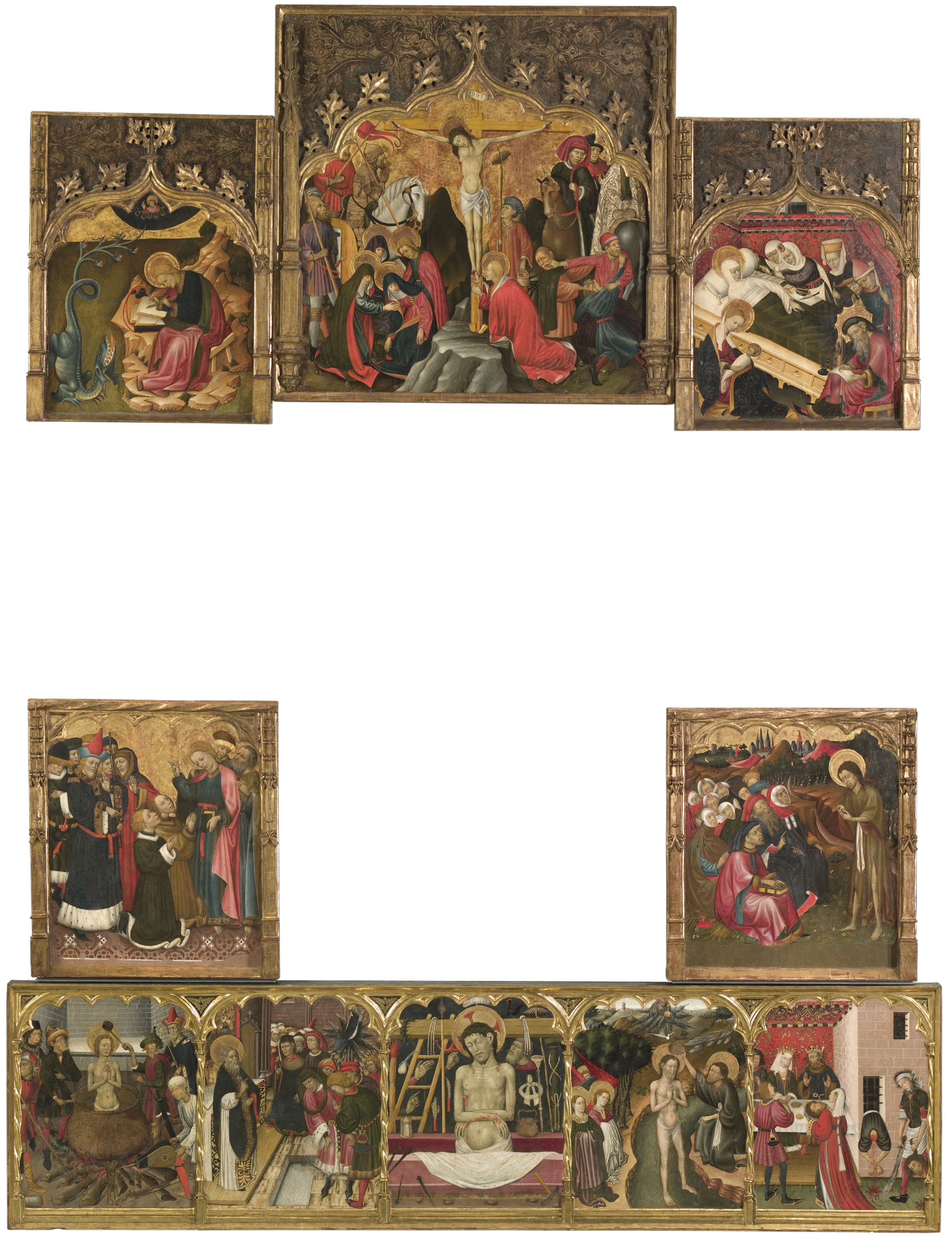 El "Retaule dels sants Joans" de Vinaixa va ser contractat l'any 1432 al pintor tarragoní Ramon de Mur, però va acabar sent pintat per Martorell. El MNAC custodia la major part de les taules d'aquest retaule. La principal es conserva al Museu Diocesà de Tarragona, un compartiment lateral es conserva al Musée Rolin d'Autun (França) i un altre resta en parador desconegut. Els dos sants Joans protagonitzen les escenes dels carrers laterals del retaule i dues més de la predel·la, respectivament. Al compartiment cimer, s'hi representa el Calvari. A la predel·la es veuen antigues agressions, sobretot ratllades, fetes als personatges que es consideraven negatius, com ara el botxí (que talla el cap a sant Joan), Herodes i Herodies (coronats darrere la taula) o els jueus.
