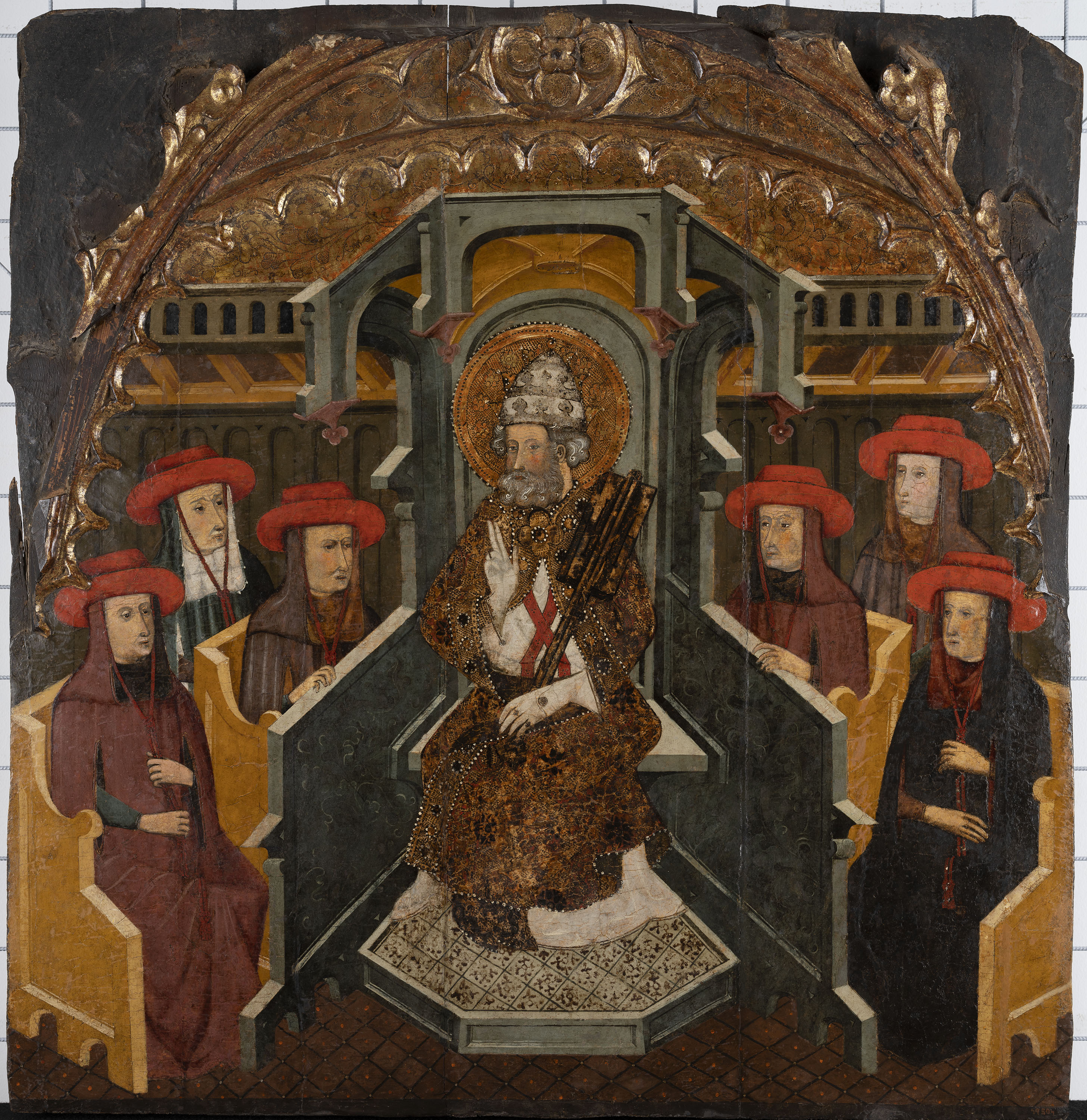 Sant Pere entronitzat i sis cardenals