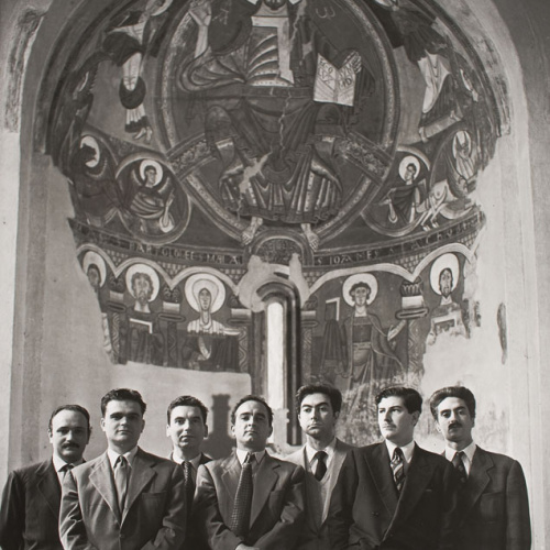 Al museu. Jaume Muxart, Josep Guinovart, Joan-Josep Tharrats, Marc Aleu, Antoni Tàpies, Modest Cuixart i Jordi Mercader (peu de foto s/p. Francesc Català-Roca, Impressions d'un fotògraf. Memòries, 1995, s/p.).p. 70: diu que és una de les fotos de grup que recorda amb més estimació. La del grup d'artistes plàstics format amb motiu de la Biennal Hispanoamericana feta a barcelona. Es va constituir amb la finalitat que alguns dels premis artístics que es concedien es quedés a casa "Una vegada feta la foto, el grup es va desfer"
