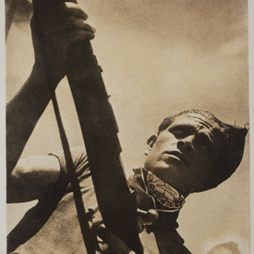 Fotografia publicada a la portada i a la pàg. 77 del catàleg de l'exposició "La guerra civil española. Fotògrafs per a la història" realitzada al Museu Nacional d'Art de Catalunya del 10 d'octubre de 2001 al 13 de gener de 2002.