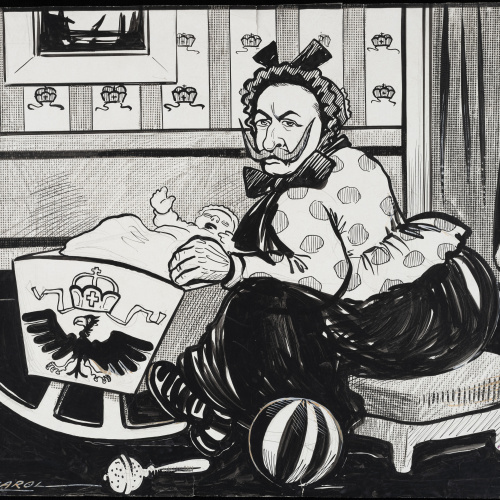 Illustration for the play by Francesc Soler called Pitarra "O rei o res!"