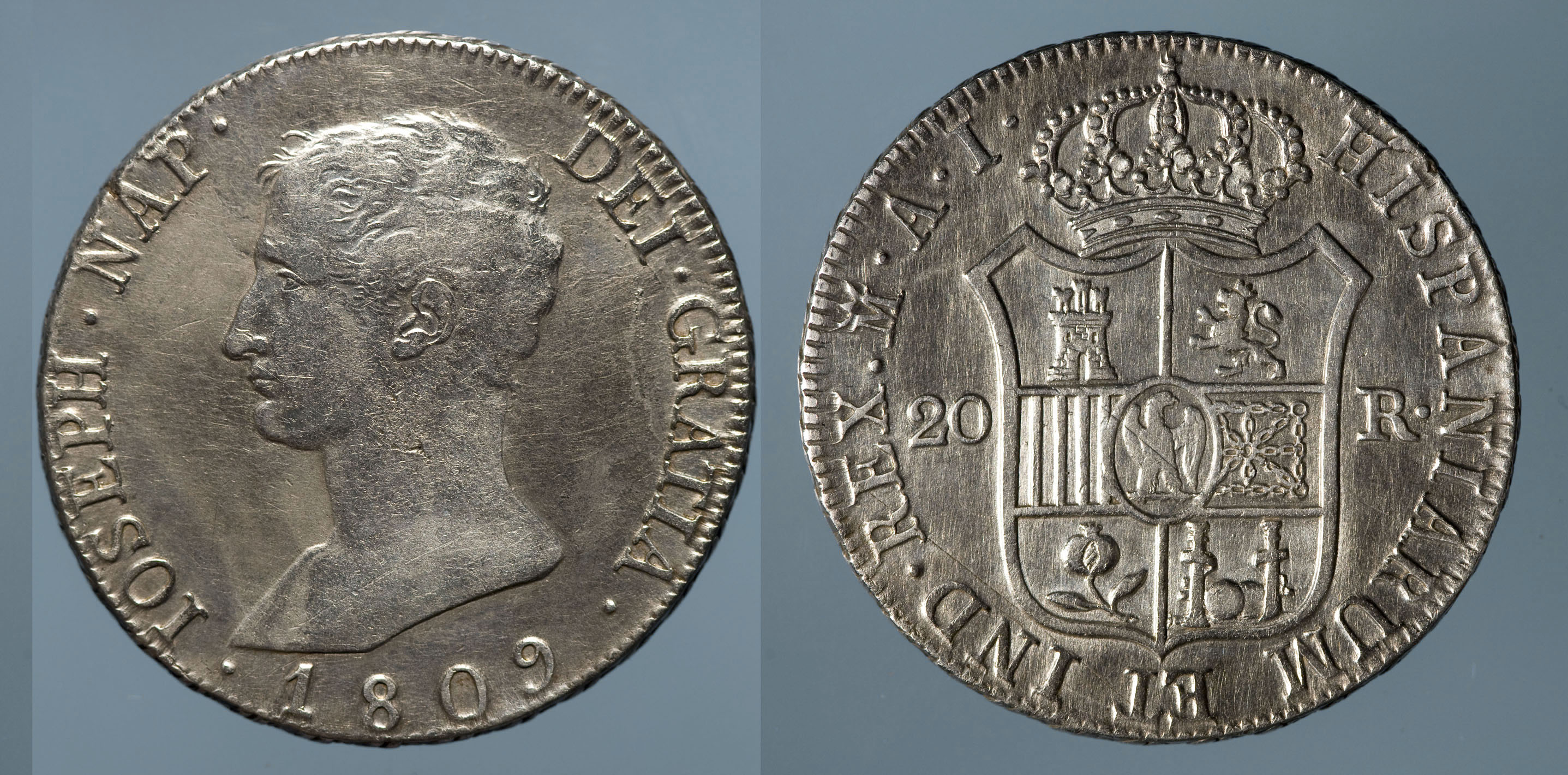 HISPANIARUM ET IND . REX . M (coronada) .A . I .(Antonio Rafael Narvaez i Isidoro Ramos de Manzanos.