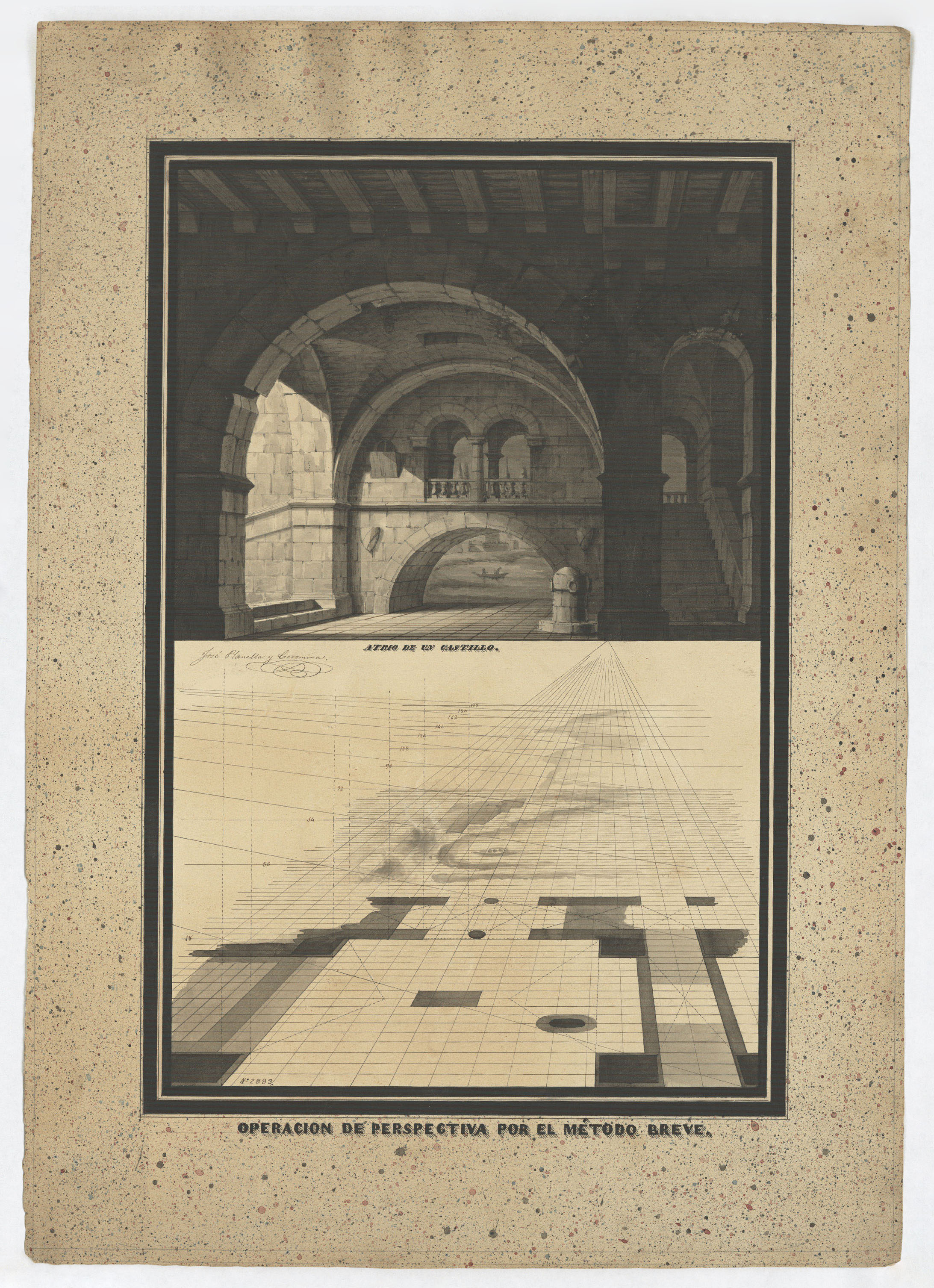 Sembla ser un dibuix preparatori per a gravat. Planella va fer un llibre sobre perspectiva on hi ha publicats alguns dibuixos molt semblants, l'any 1840