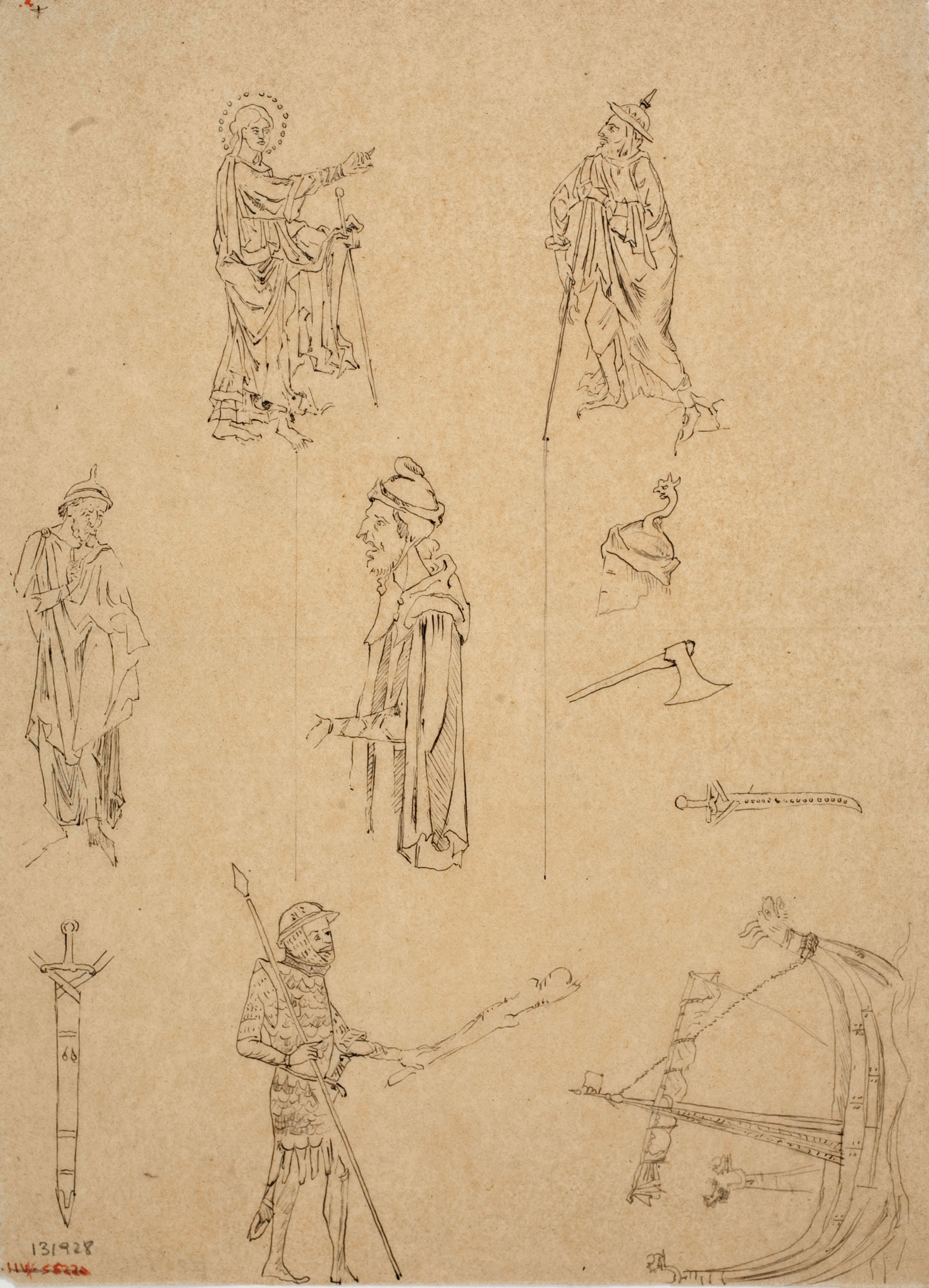 Calc of medieval motifs (figures and boat)