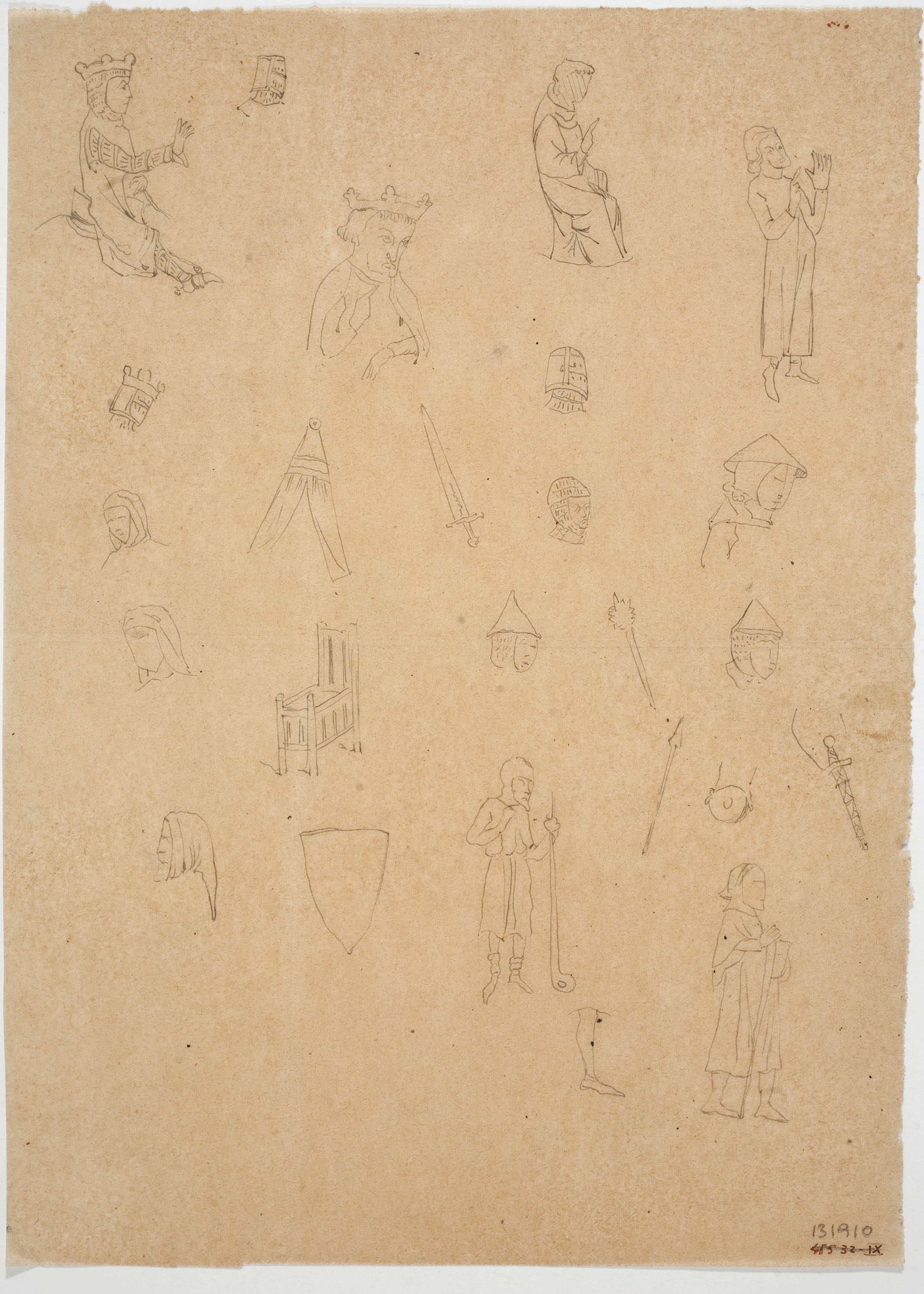 Calc of medieval motifs (heads and other figures)