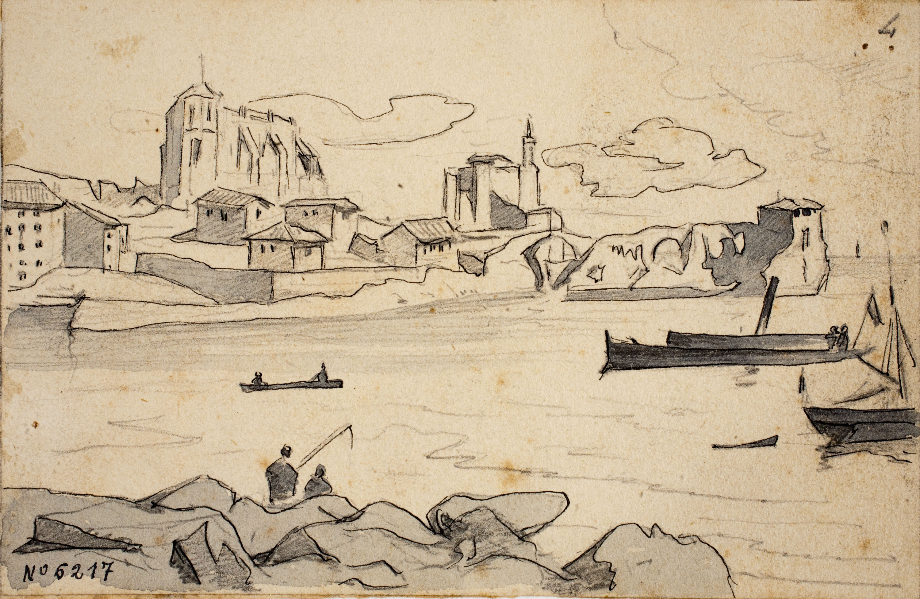 Wash and pen on paper
