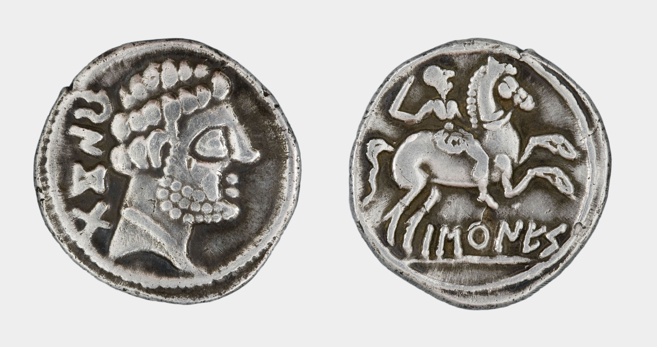 Cap masculí, a la dreta - al darrere, la llegenda.