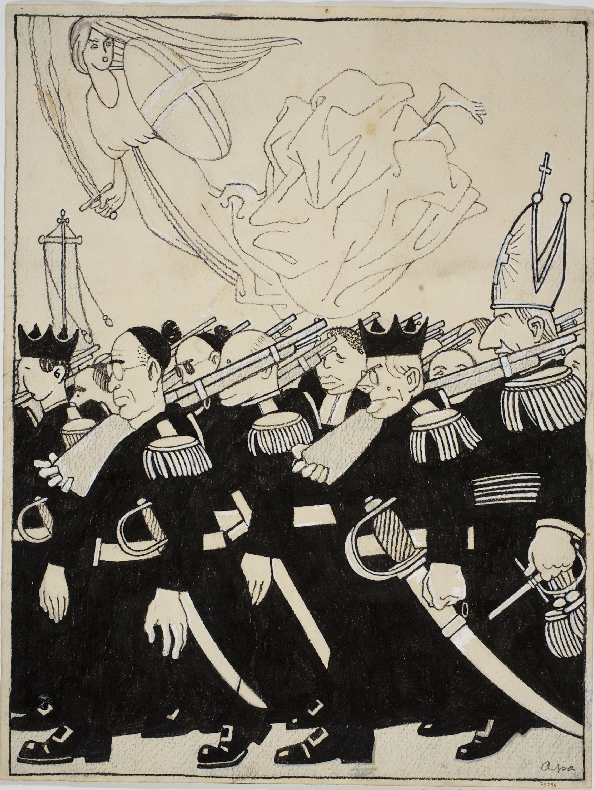 Tinta, guaix i llapis de color sobre paper