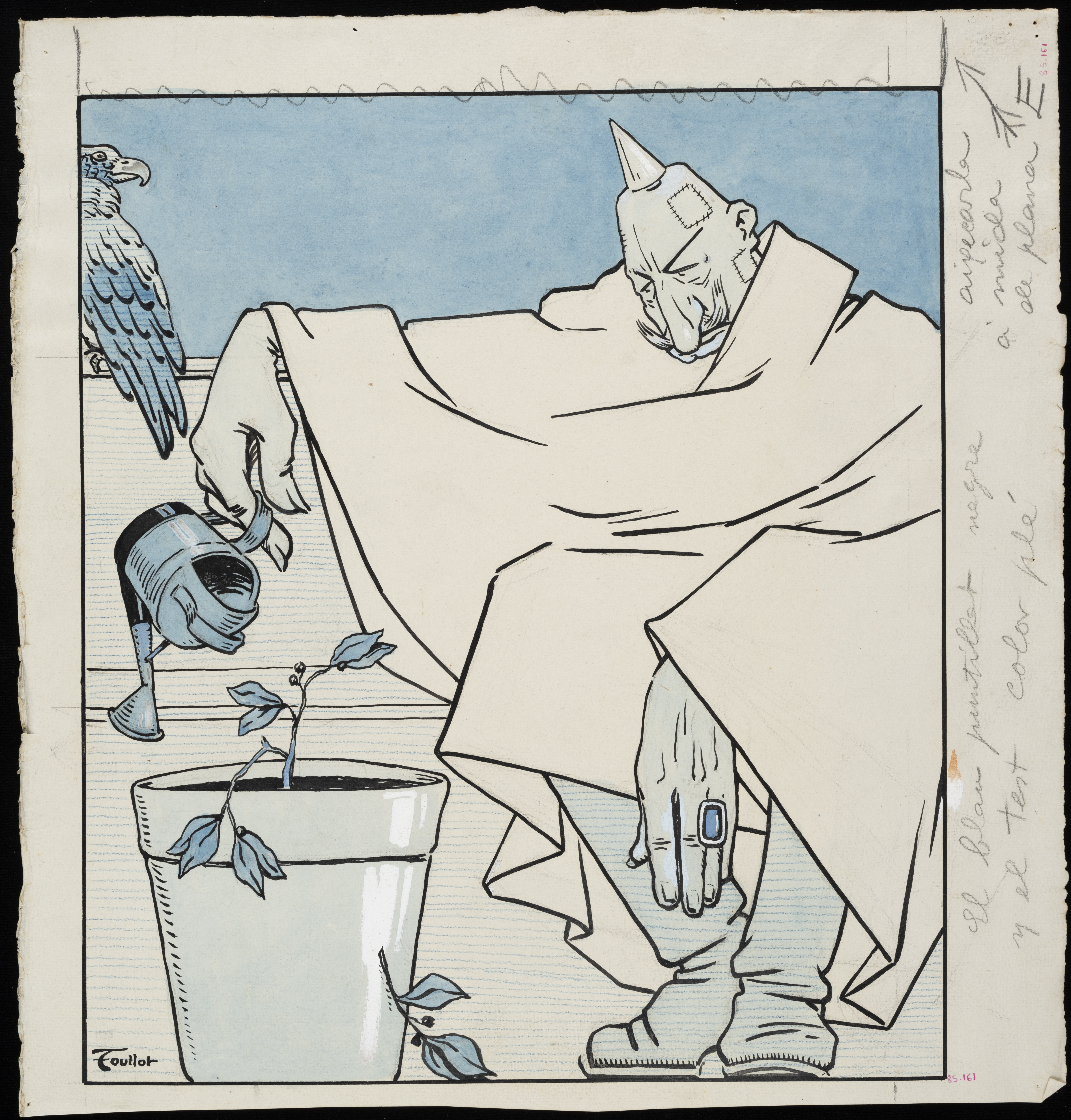Tinta, llapis de color, llapis grafit, aquarel·la i guaix sobre paper
