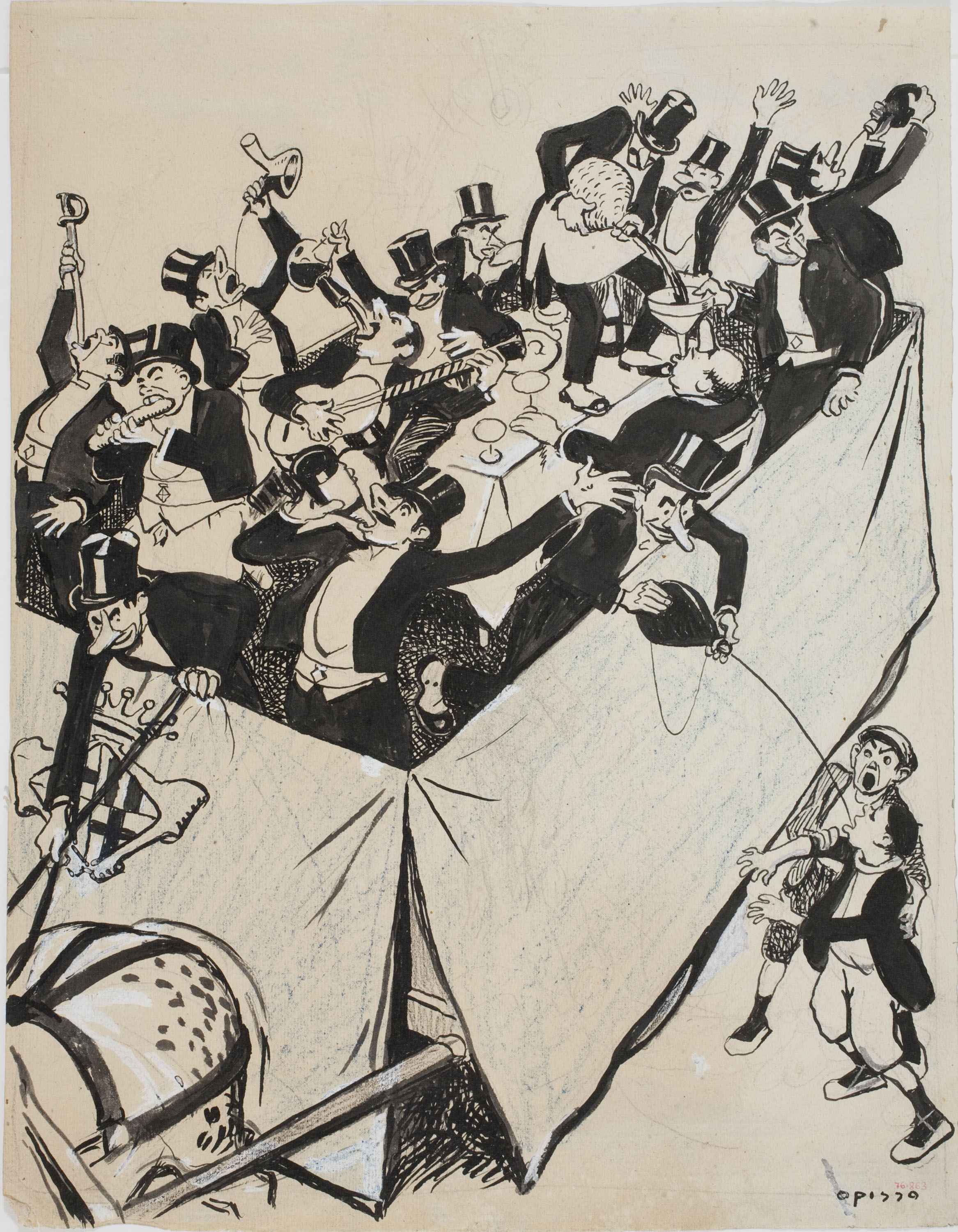 Ink and coloured pencil on paper