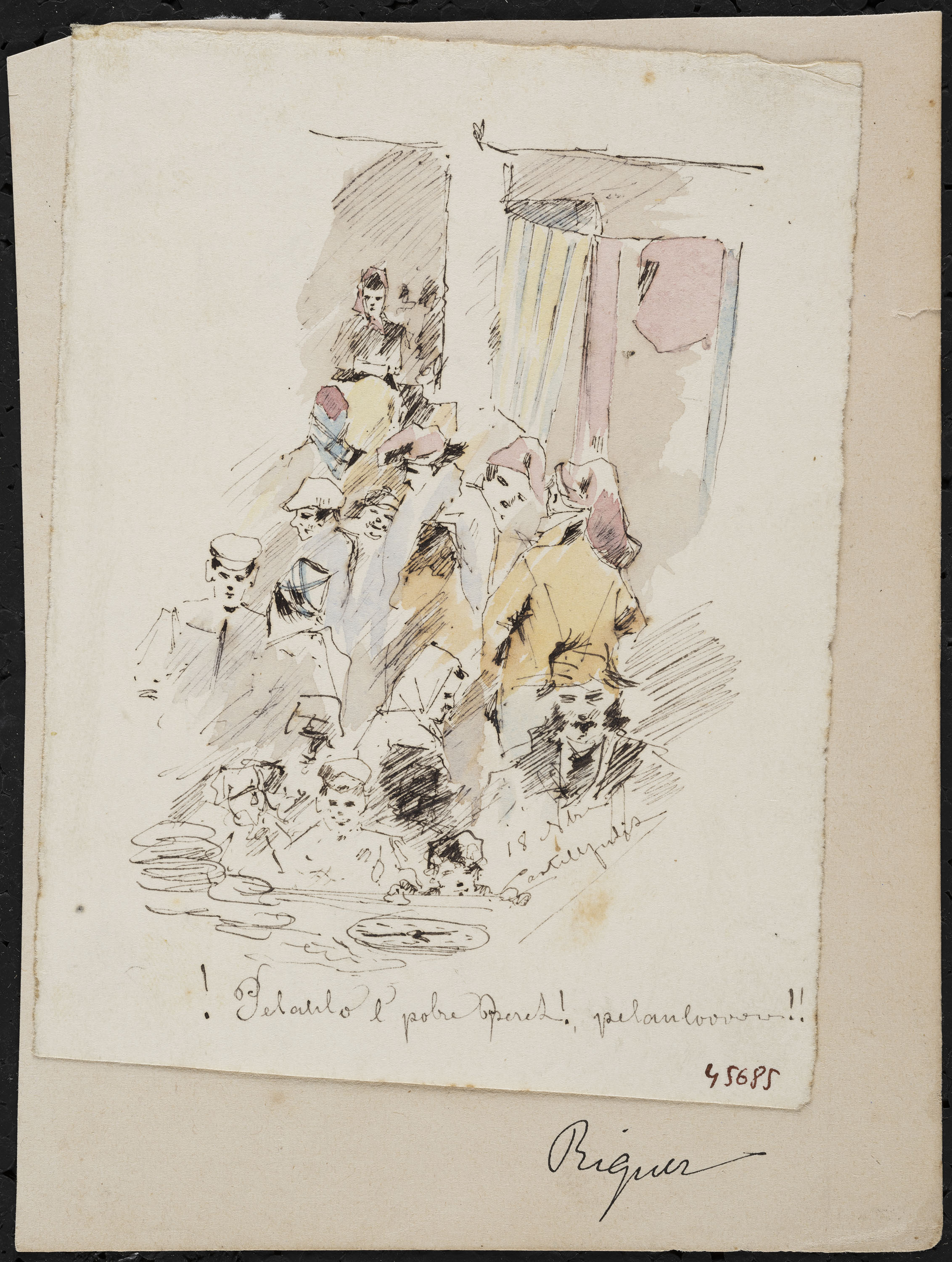 Pen ink and watercolour on paper