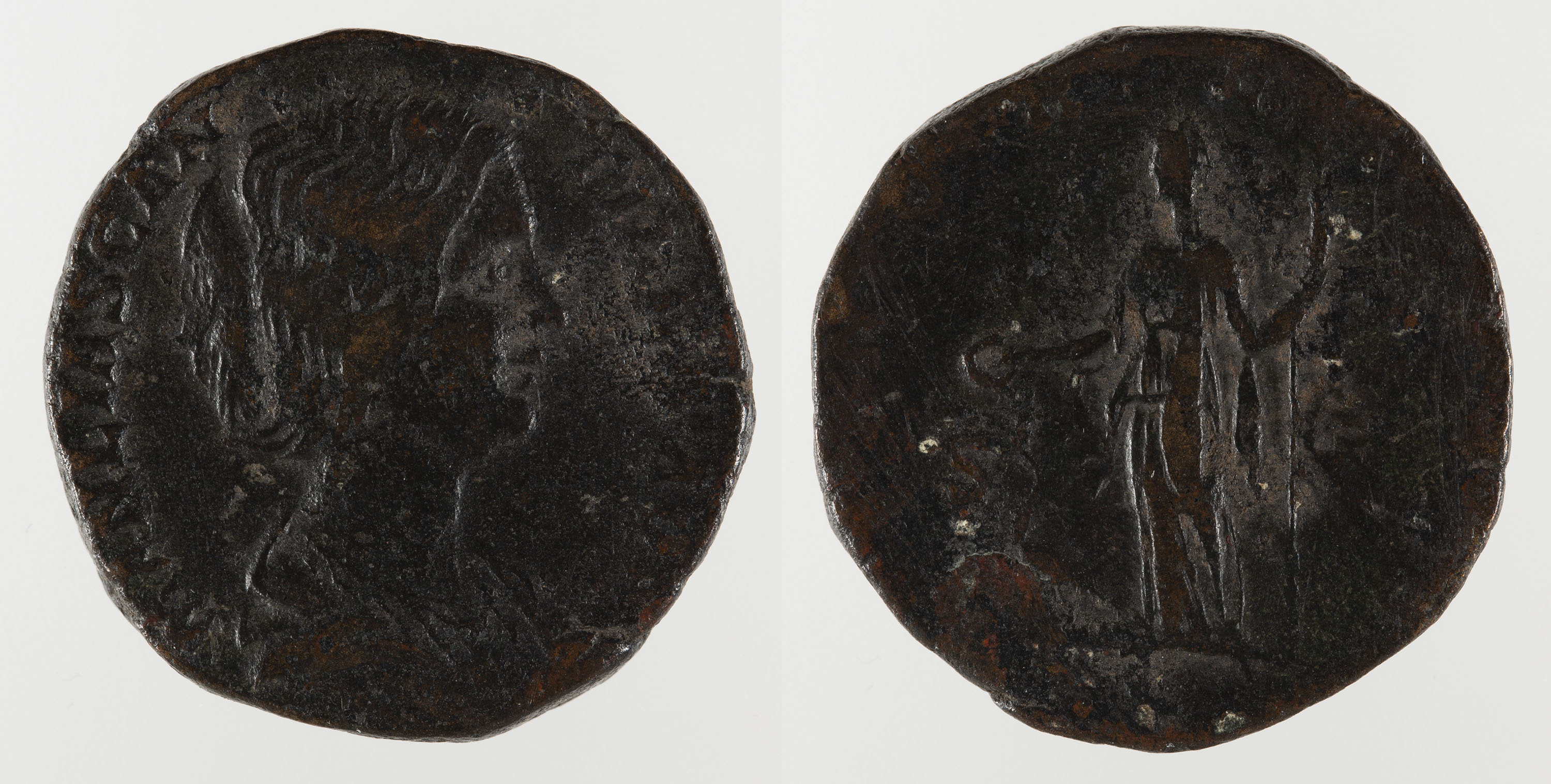 Juno dempeus a l'esquerra amb patera i un peó al peus, entre S-C.