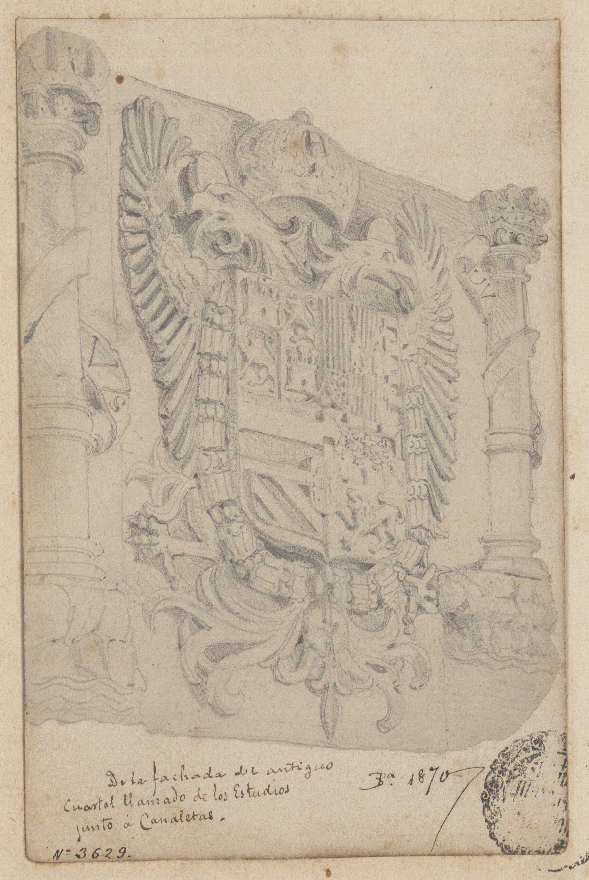 Shield on the façade of the old study quarter on Rambla de Canaletes