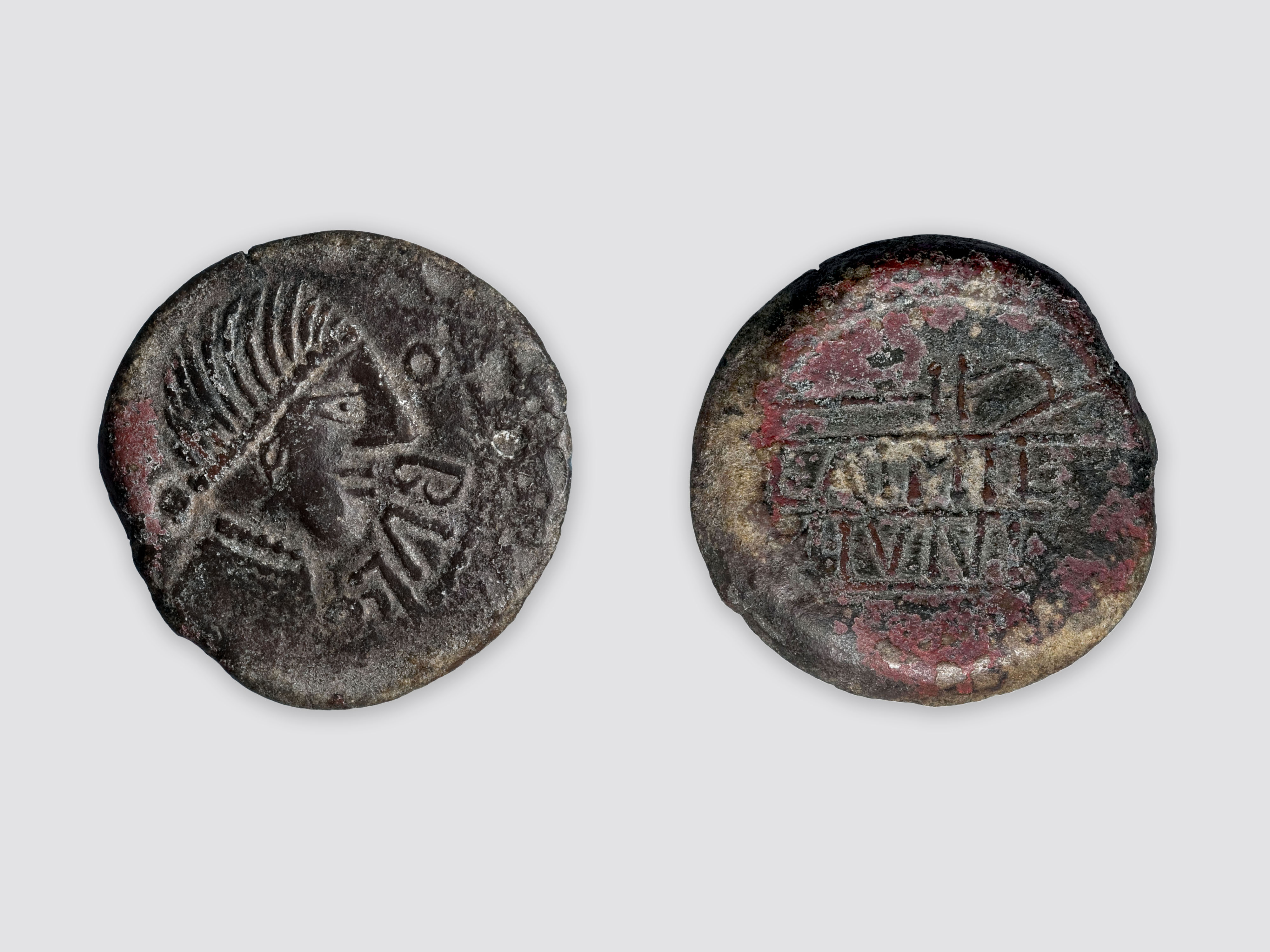 Cap femení amb collaret, a la dreta. Al davant, la llegenda.