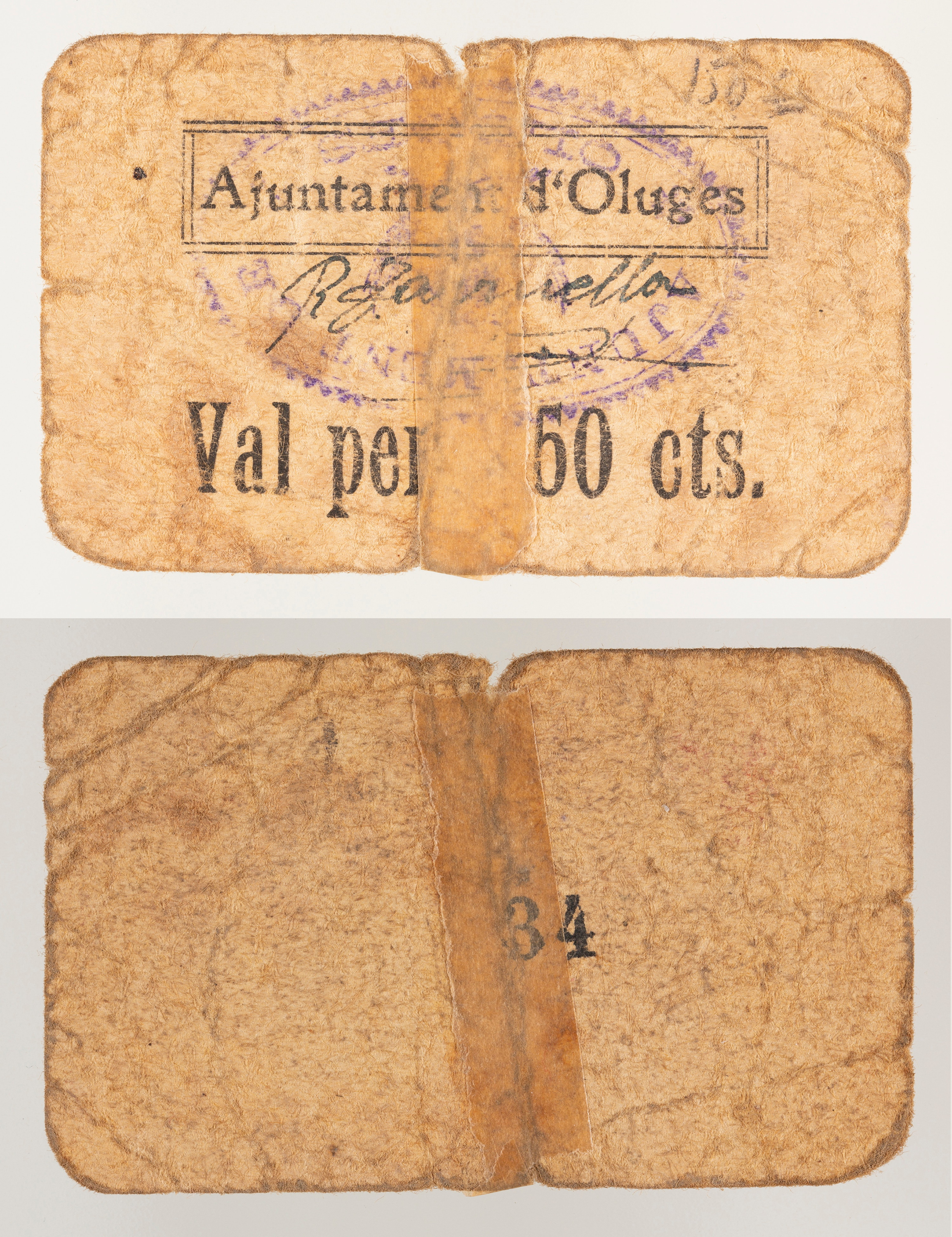 AJUNTAMENT D'OLUGUES / VAL PER 50 CTS.