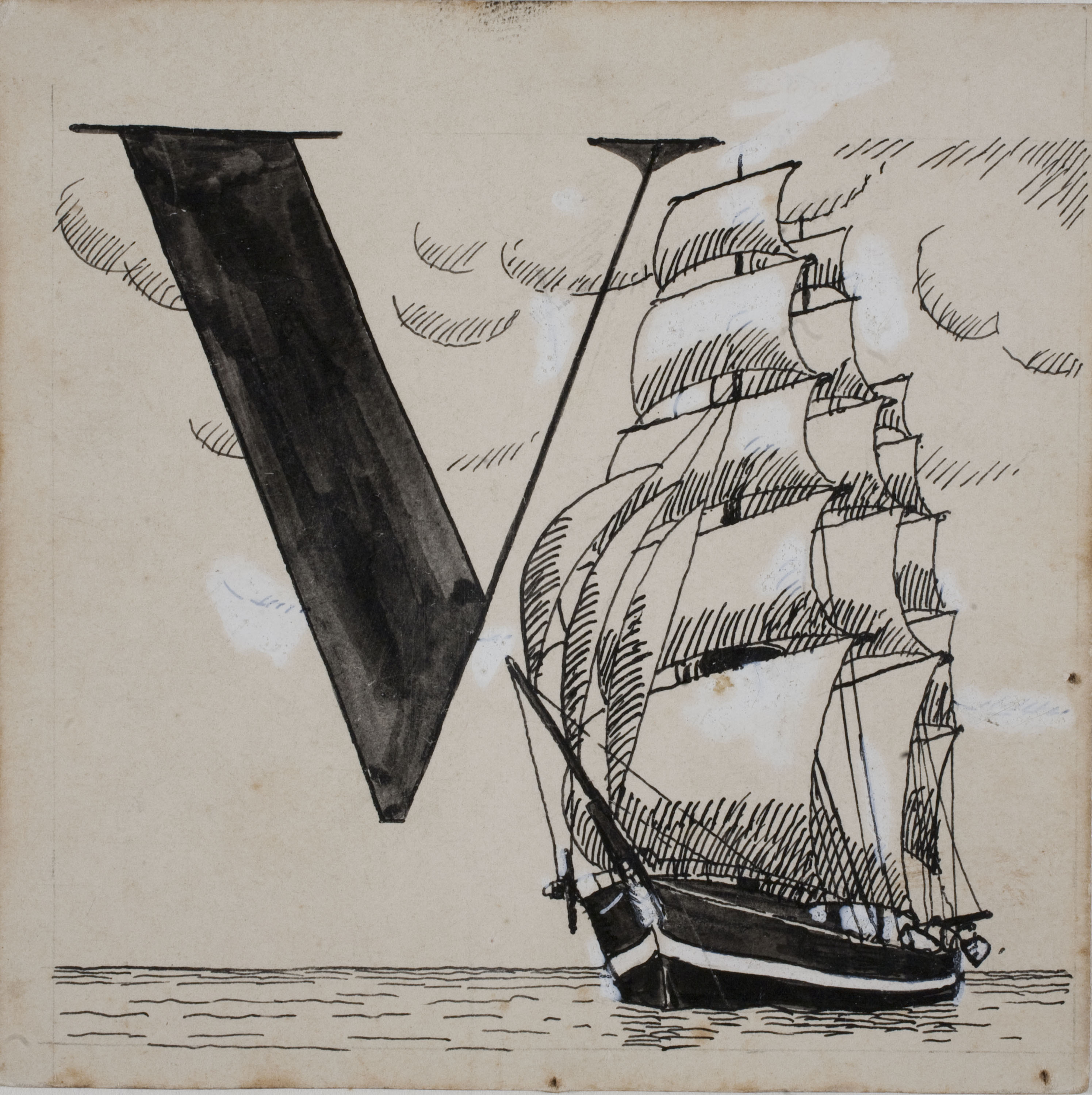 Letra V (ilustración para el «Abecedario catalán para niños» editado por la Librería Nacional Catalana de Salvat-Papasseit)