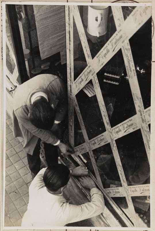 Protegint els vidres amb tires de paper engomat